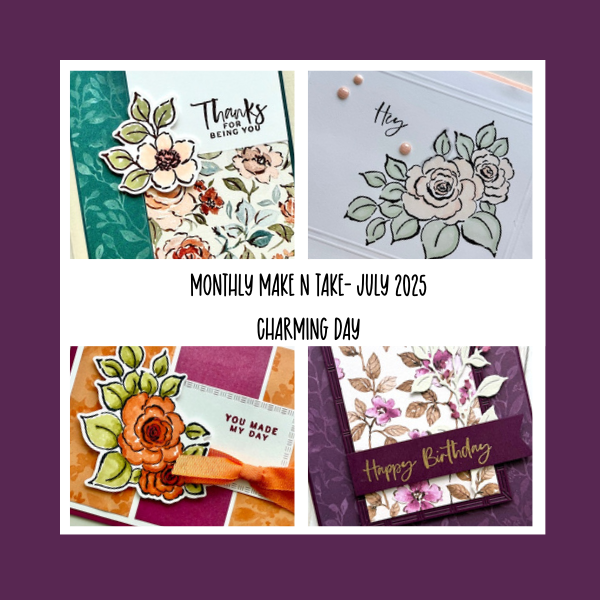 Monthly Make n Take tutorial featuring Charming Day (5 projects) July 2025
